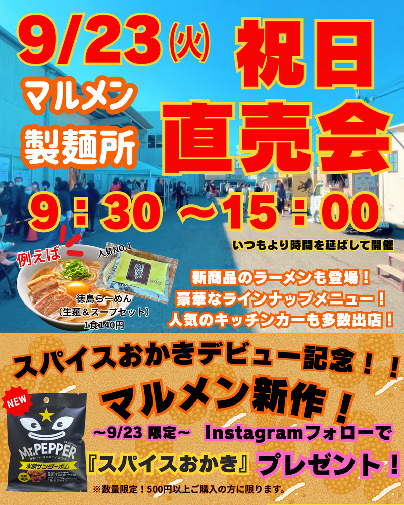 2025年9月9日(火)9:30~13:00直売会販売予定メニュー 徳島らーめん 140円 味噌らーめん...